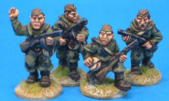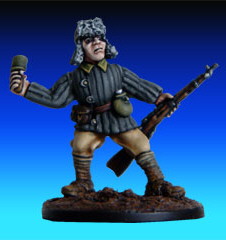 One of the first manufacturers of 25mm WWII miniatures, their range is still one of the most comprehensive available to this day. The figures are 25mm and a bit on the small side by current standards. The range includes both early and late war infantry, command and support, N.K.V.D., snowsuits and gun crews.